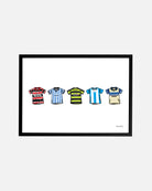 - Design: A collection of classic football shirts.